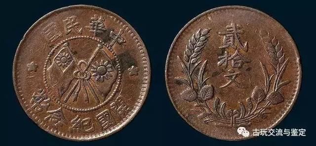 中华民国双旗铜币二十文----50-80万-------成交价:RMB1,850,000万--2017-11-7