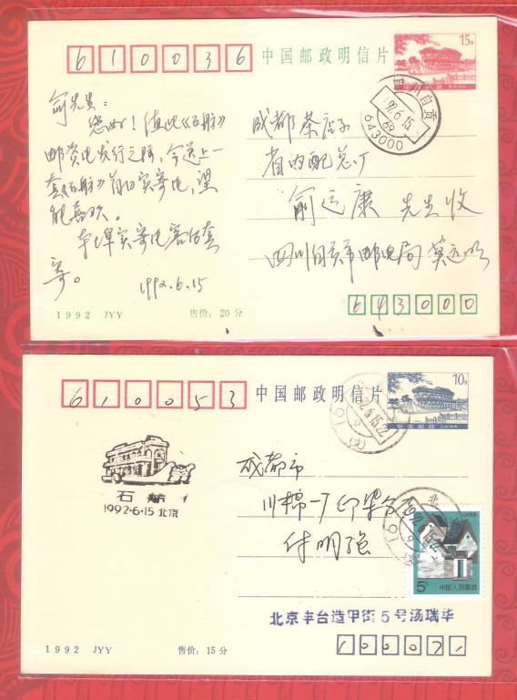 [拍卖] 《1992.JYY》首日实寄片两枚。中标请付挂号信邮资5元【拍卖】 |