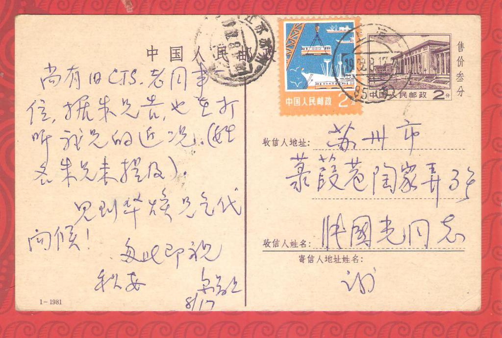 [拍卖] P14(1-1981)邮资实寄片一枚【拍卖】 |