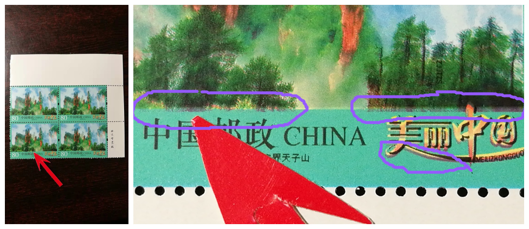 [普32 第一组] 普32 天子山 树干下面多了黑色油墨 美丽中国字多了黑色油 |