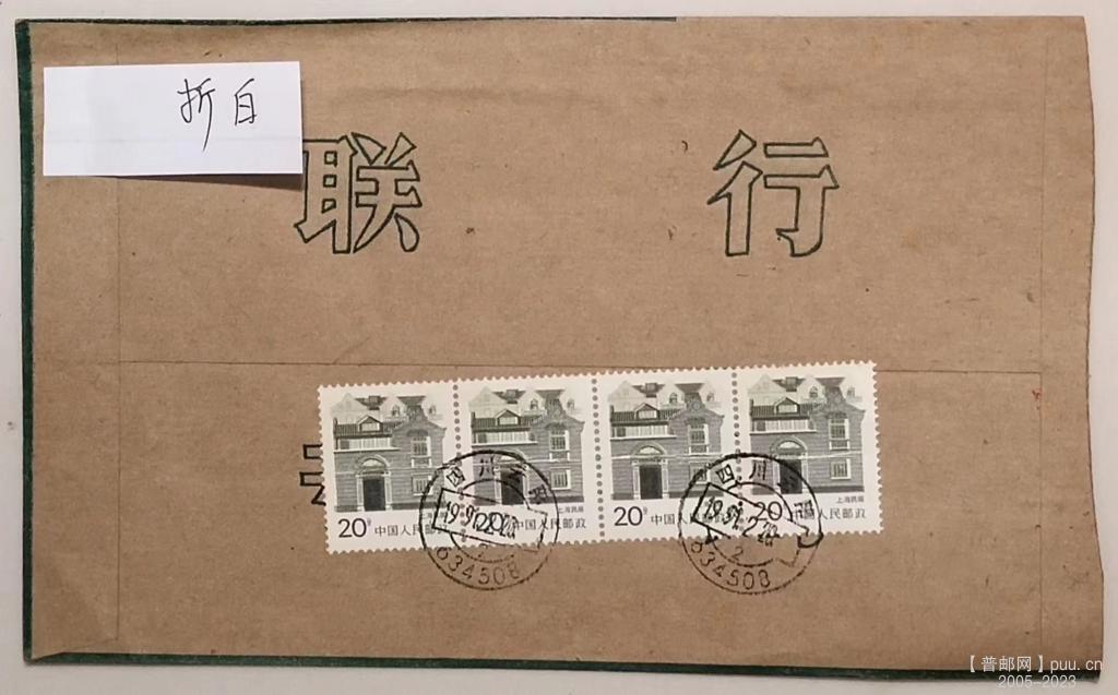上海民居 “折白” 横多联实寄封 |