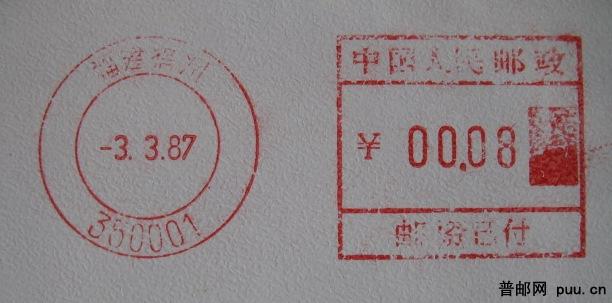 [邮资机戳] 福建福州87年早期邮资机戳! |