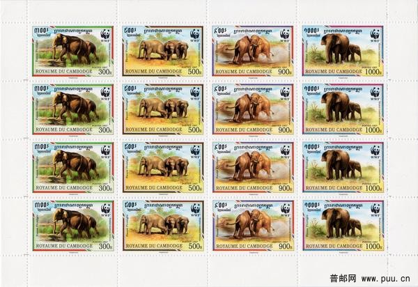 柬埔寨1997年02月12日,发行了一套四枚马来象邮票: