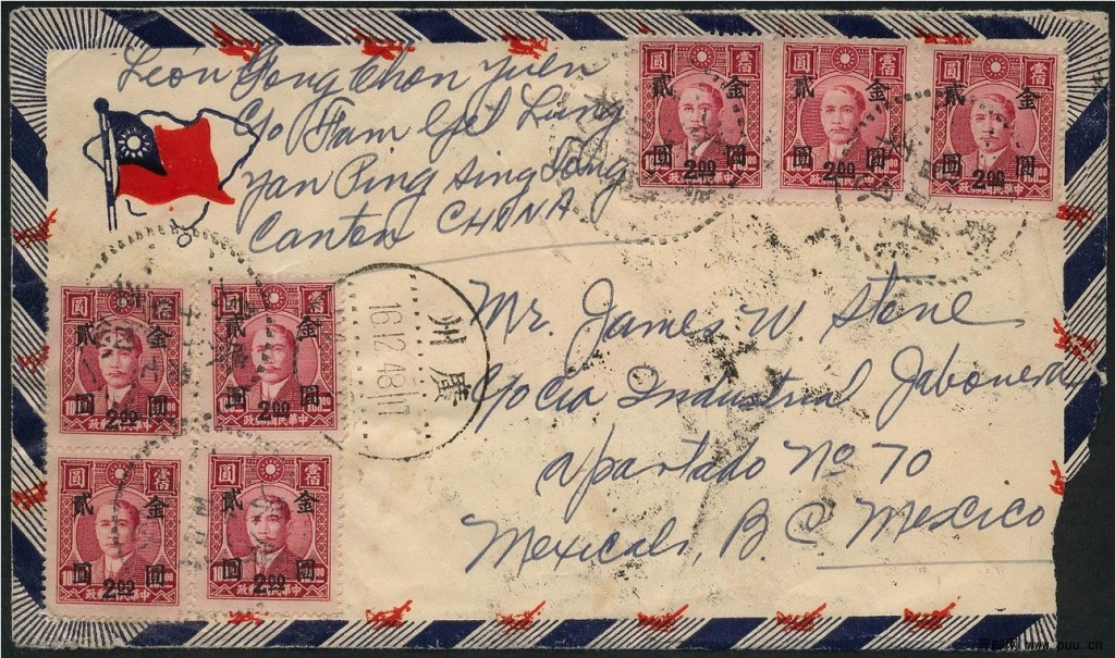 [金圆时期] 1948年12月14日广东恩平寄墨西哥航空实寄封 |