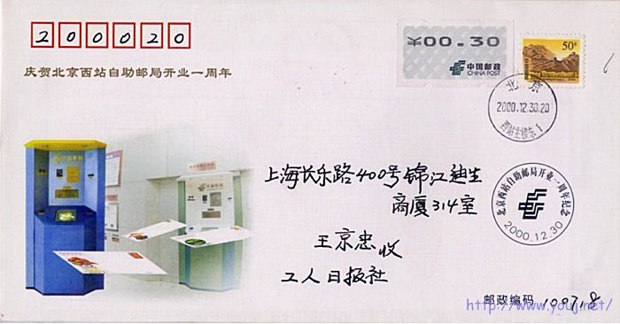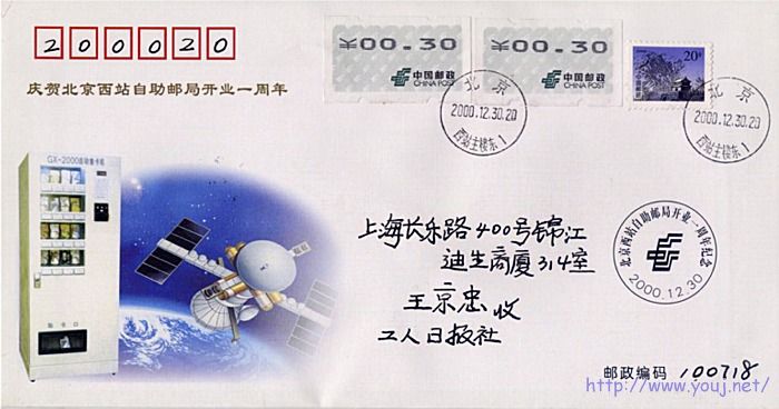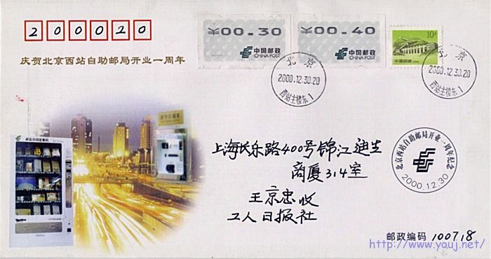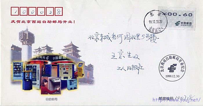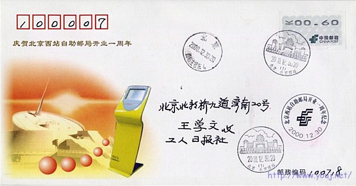 啟用地點: 中國 北京西站自助郵局開始試用 (試用範圍僅限于北京西站郵局)