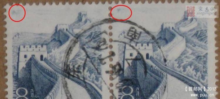 [普21] 少见的有暗记的雕版8分长城 |