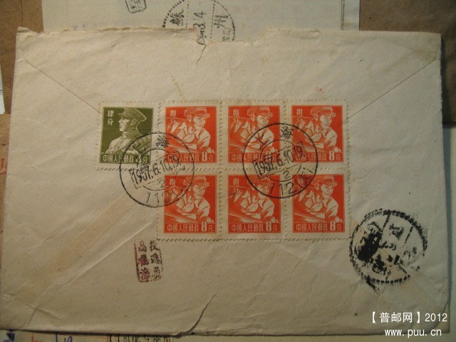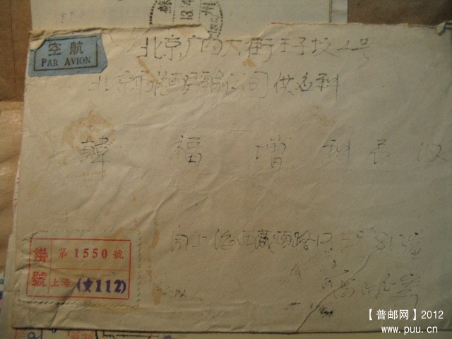 [普8] 贴普8票30g国内航空邮资8分期间航空挂号实寄封 |