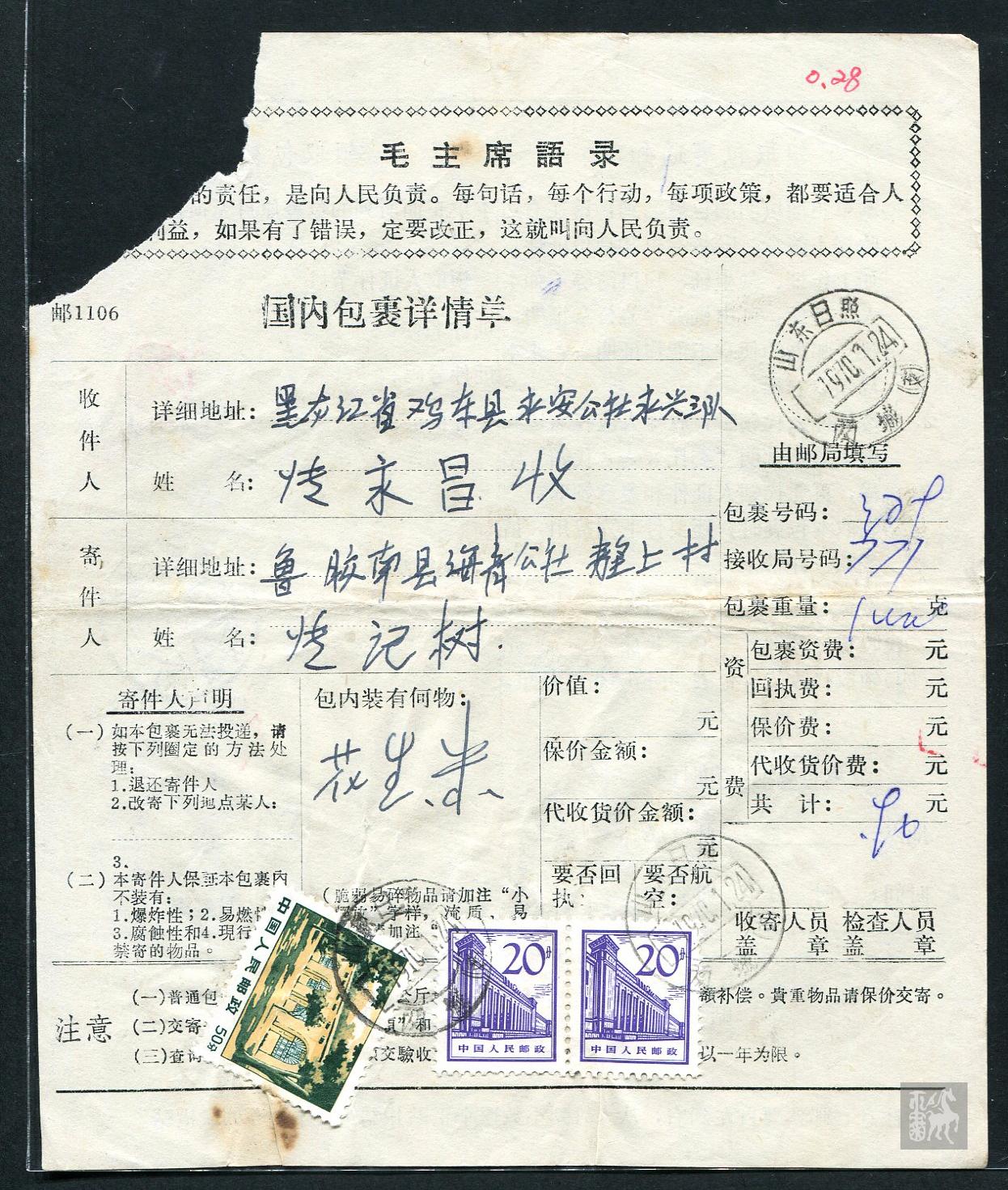 [普无号] 普无号50分当年当月实寄包裹单 |