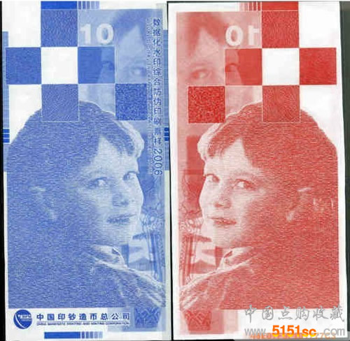 这是中国唯一的一张竖版测试钞,也是唯一一张使用了数据化暗水印和隐性荧光水印的测试钞,前面的几个暗水印或可在紫外线下直接显现。