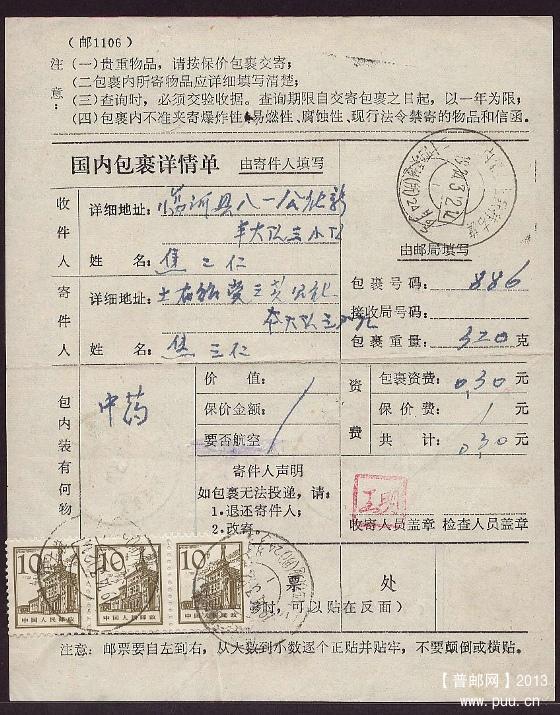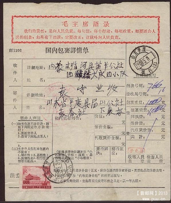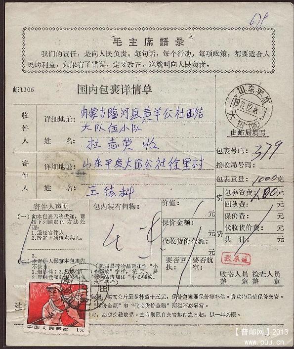 [邮政用品] 一些60-70年代的寄内蒙或内蒙寄出各类地名包裹单出让! |