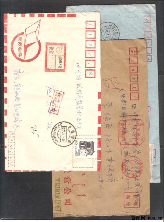 【拍卖】实寄封(快件、邮资已付)3件 (拍品编号:6688)