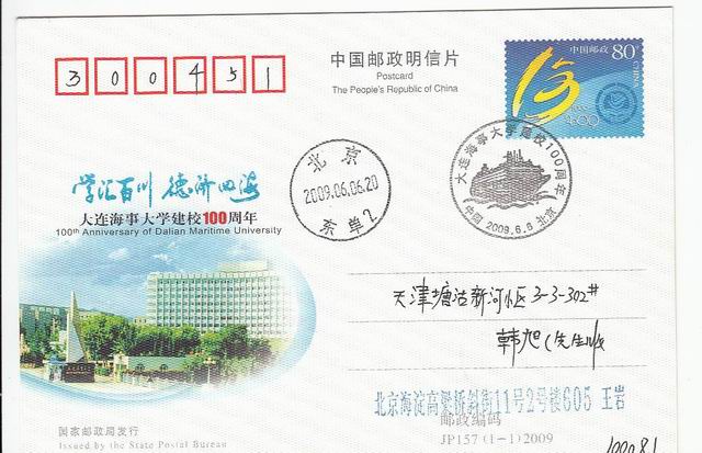 [拍品预展] 【一口价】JP157大连海事大学100周年原地首日实寄 (拍品编号:6895) |