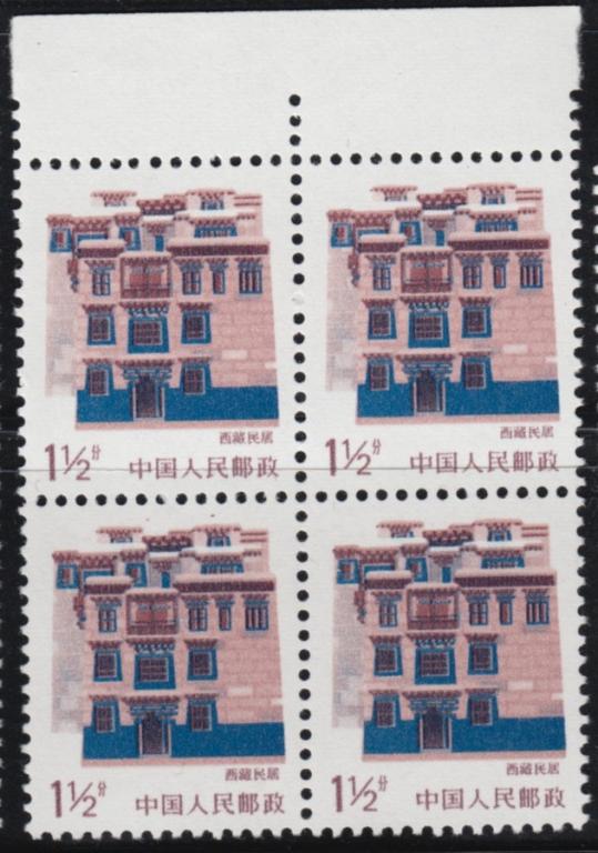 【一口价】普23 西藏民居整枚漏蓝色变体四方联一件 (拍品编号:6819)