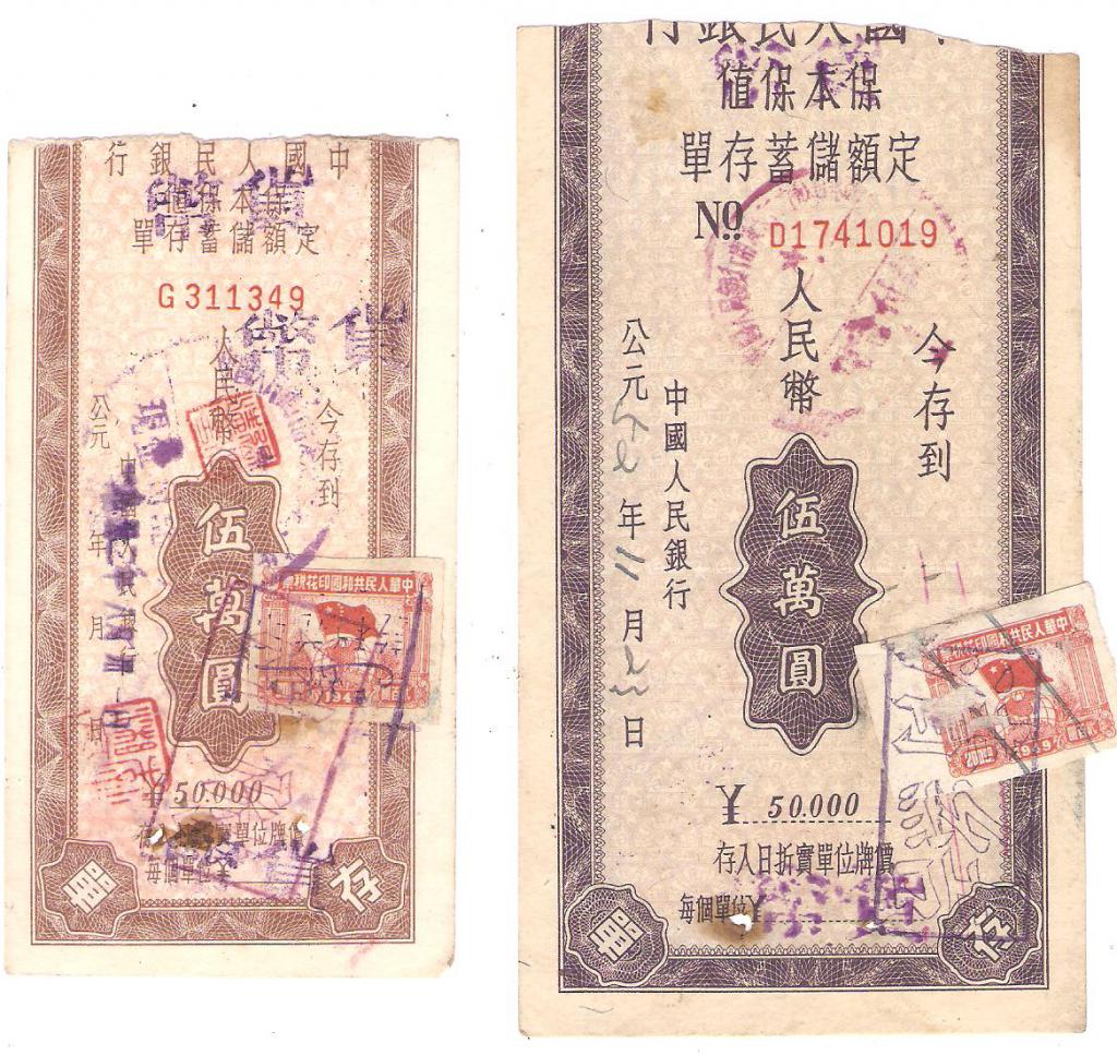 【拍卖】在银行定额存单上贴球旗图印花税票的单据2件 (拍品编号:7048)