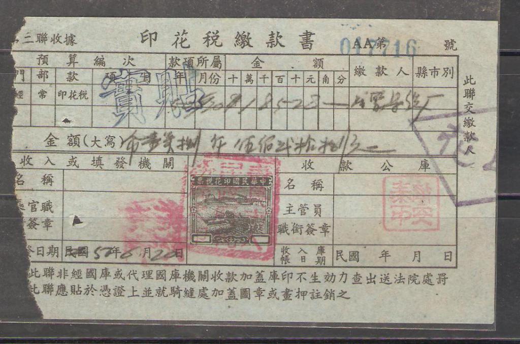 [拍品预展] 【拍卖】农工图印花税缴款书1件(新中国早期使用) (拍品编号:7213) |