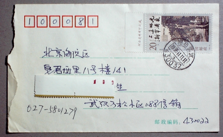 【拍卖】【厂铭封】1995年贴傅抱石作品选20分厂铭票实寄封一枚 (拍品编号:7247)