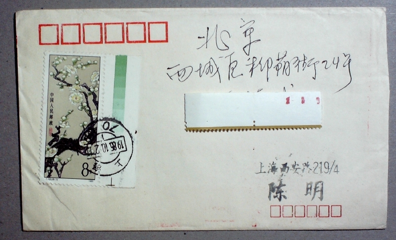 [拍品预展] 【拍卖】【色标广告封】1985年贴梅花8分色标票上海寄北京广告实寄封一枚 (拍品编号:7249) |
