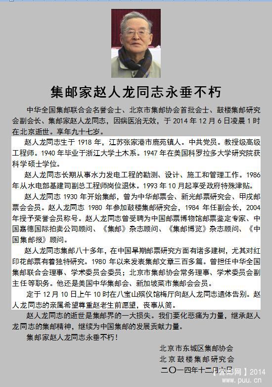 [北京] 赵人龙先生讣告!!!! |