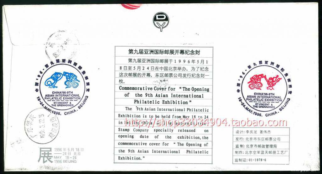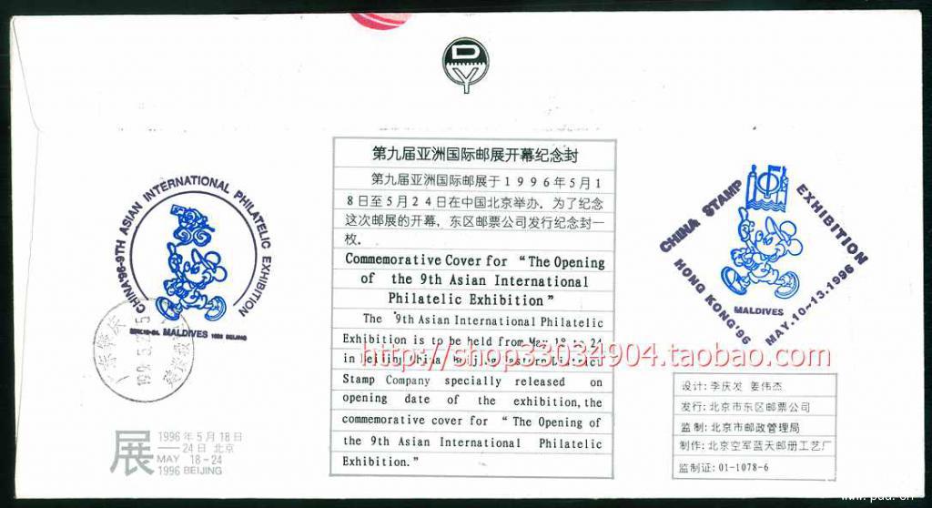 [实(非)寄封封片] 1996年第九届亚洲国际邮展开幕纪念封 |