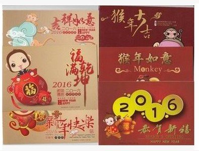 2016年生肖猴个性红包邮折贺年片封6套【拍卖】