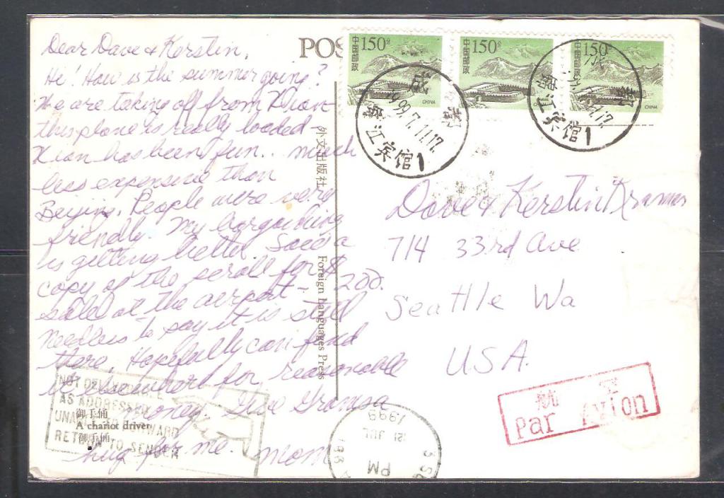 贴长城150分三联在国际航空信函邮资片上的使用生死、双戳清【拍卖】