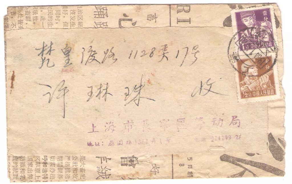 [拍卖] 普8:一分半实寄封,盖上海1964.1.15日始发戳,另盖上海1.16日到达戳【拍卖】 |