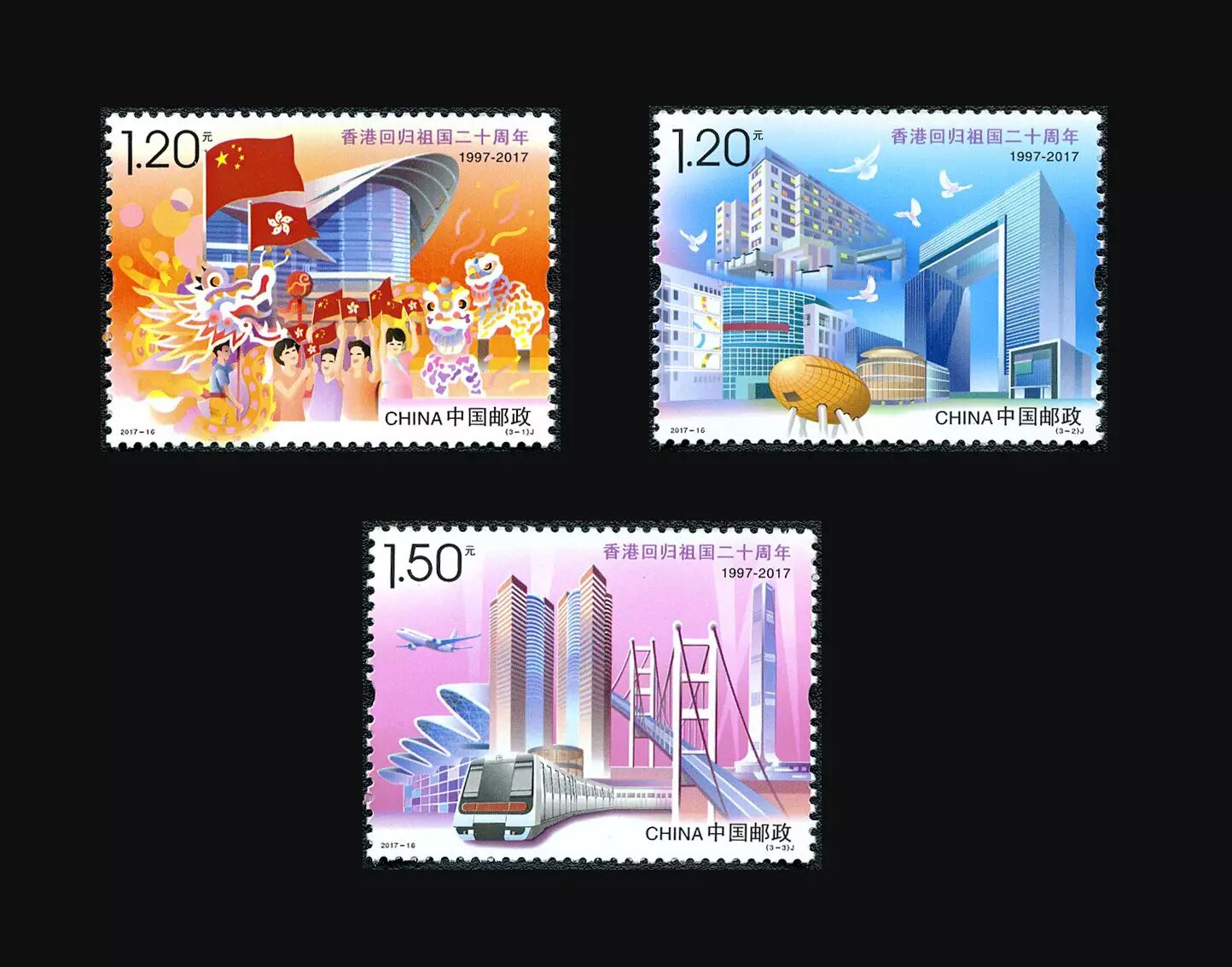 今年的政治题材邮票中有一套格外引人关注,那就是《香港回归祖国二十周年》纪念邮票。我们首次邀请了香港著名设计师韩秉华设计,继续对政治类题材邮票进行大刀阔斧的改造,他运用电脑写实技术,跨越空间的概念将各种元素组合在一起,描绘出香港今日的繁华,凸显了香港作为创新发展的国际都市的魅力。