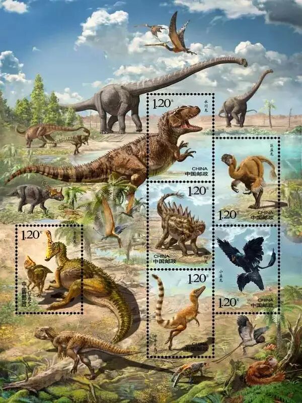 我国上一次在邮票中表现恐龙还是在1958年,当年发行的特22《中国古生物》邮票中出现了禄丰龙骨架和复原图的画面,这也是世界上第一枚印有恐龙形象的邮票。而今年5月发行的《中国恐龙》是我国首次以恐龙为主题发行的特种邮票,发行计划一公布就获得了邮迷的普遍关注。该套邮票由著名科学艺术家赵闯设计,丹麦著名雕刻师马丁·莫克携集团公司邮票印制局的6名雕刻师集体创作完成,兼具科学性和艺术性。