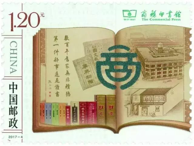 在2月底发行的《商务印书馆》中,设计者夏竞秋通过对其标志的图像化演绎,将一本打开的书和“商”字作为邮票的主体图案。在遴选设计稿时大家觉得“商”字的出现过于突兀,打算在后期调整时修饰掉,可设计师认为“商”字作为商务印书馆的身份标识,反映了商务印书馆的百年风雨历程,也是画面的点睛之笔,参照人民币中常用的光彩变色防伪墨丝网印刷技术,可以使它散发出金属般细腻的光泽,在变换角度时还能产生变色效果,寓意商务印书馆历久弥新的文化坐标。经过几番深入讨论,这套方案最终得到了大家的一致认同。